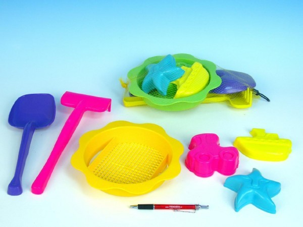 Síto střední 23cm+lopatka,hrabičky,bábovky 3ks