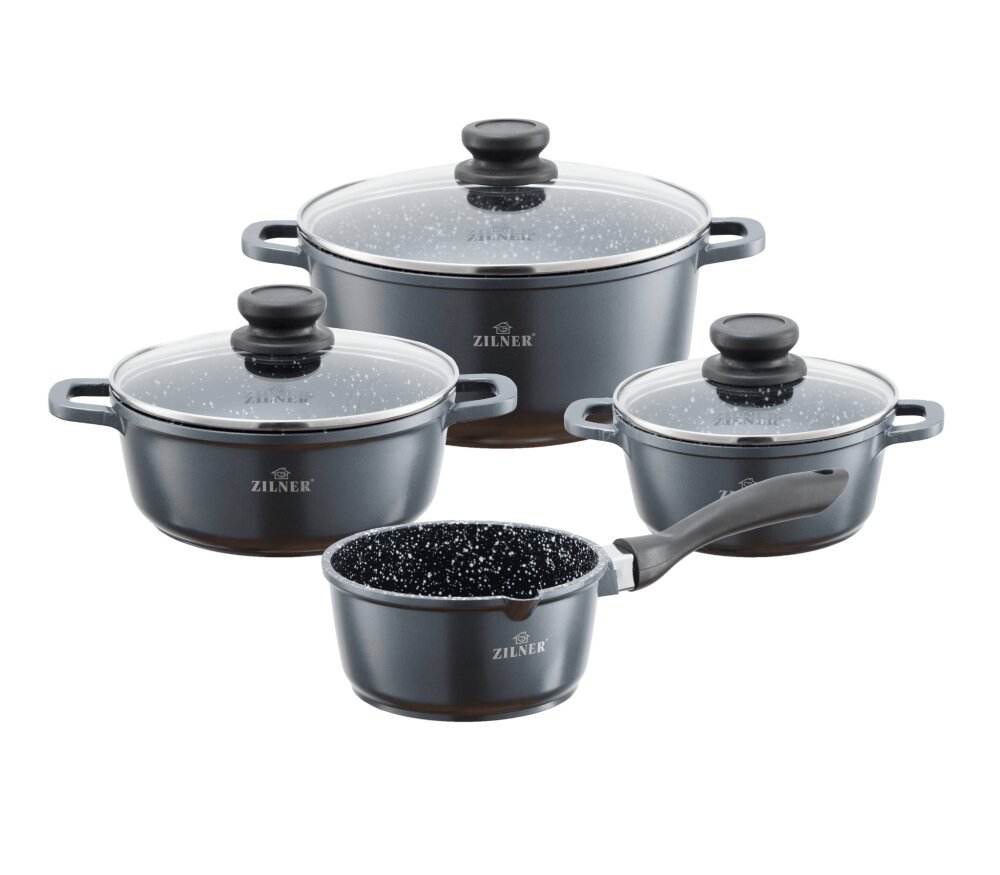 Naše sada keramicko-mramorových hrnců - 7 ks je vyrobena z kvalitního hliníku s nepřilnavým keramicko-mramorovým povrchem, který odolává poškrábání a neabsorbuje zápachy, takže si pokrmy zachovávají svou čistou chuť. Díky této speciální úpravě můžete vařit s minimem tuku a následné čištění hrnců bude snadnější než kdy dříve.
