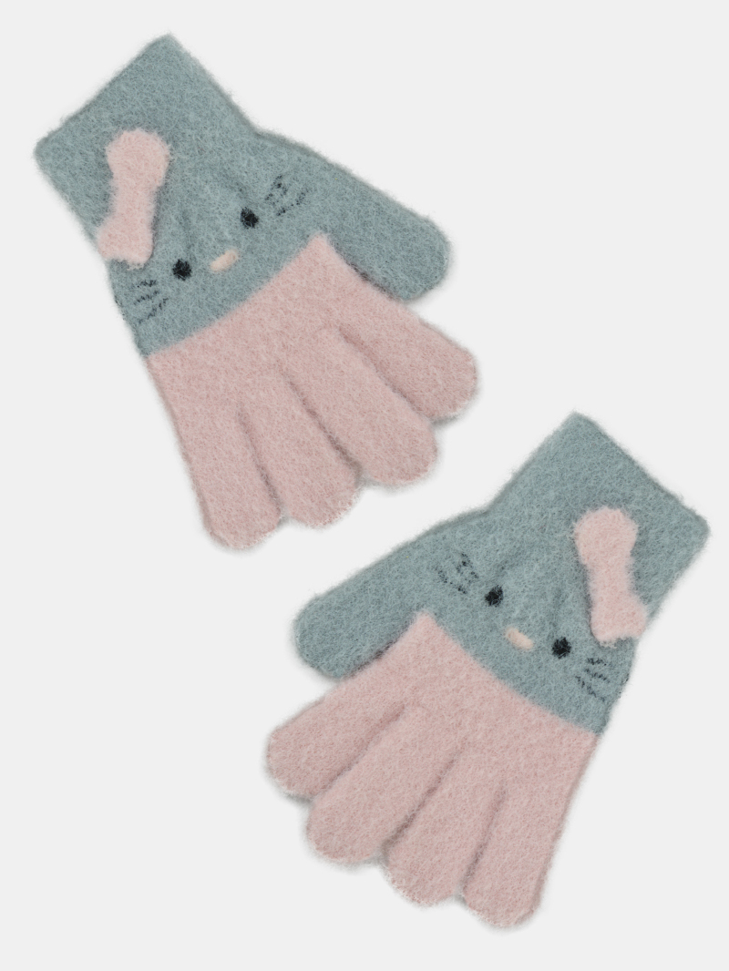 NOVITI RZ046-G-01 Rękawiczki dziewczęce 5P puszyste pojedyncze serce 12