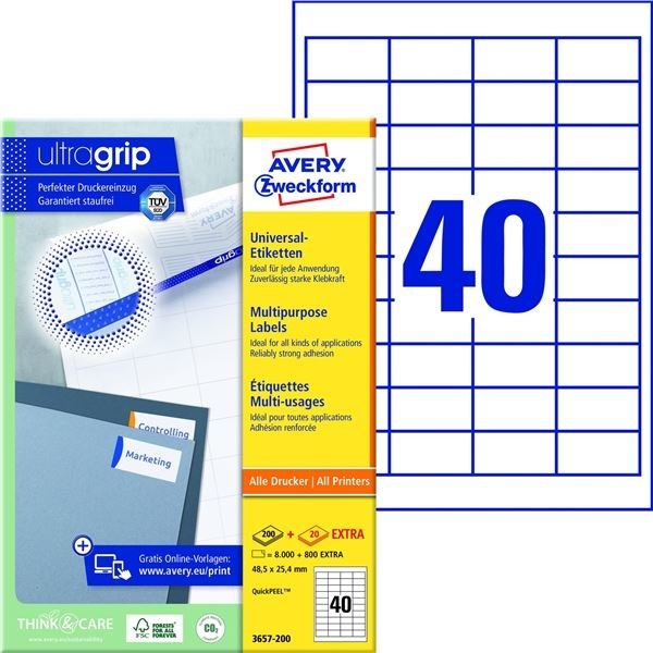 Inovativní technologie ultragrip na zadní straně archu zajišťuje bezchybné natažení archu etiket a tisk bez zasekávání archu etiket v tiskárně Univerzální bílé etikety jsou určeny pro každodenní použití na listovní zásilky a balíky, na označování, číslování, oceňování sortimentu či výrobků...