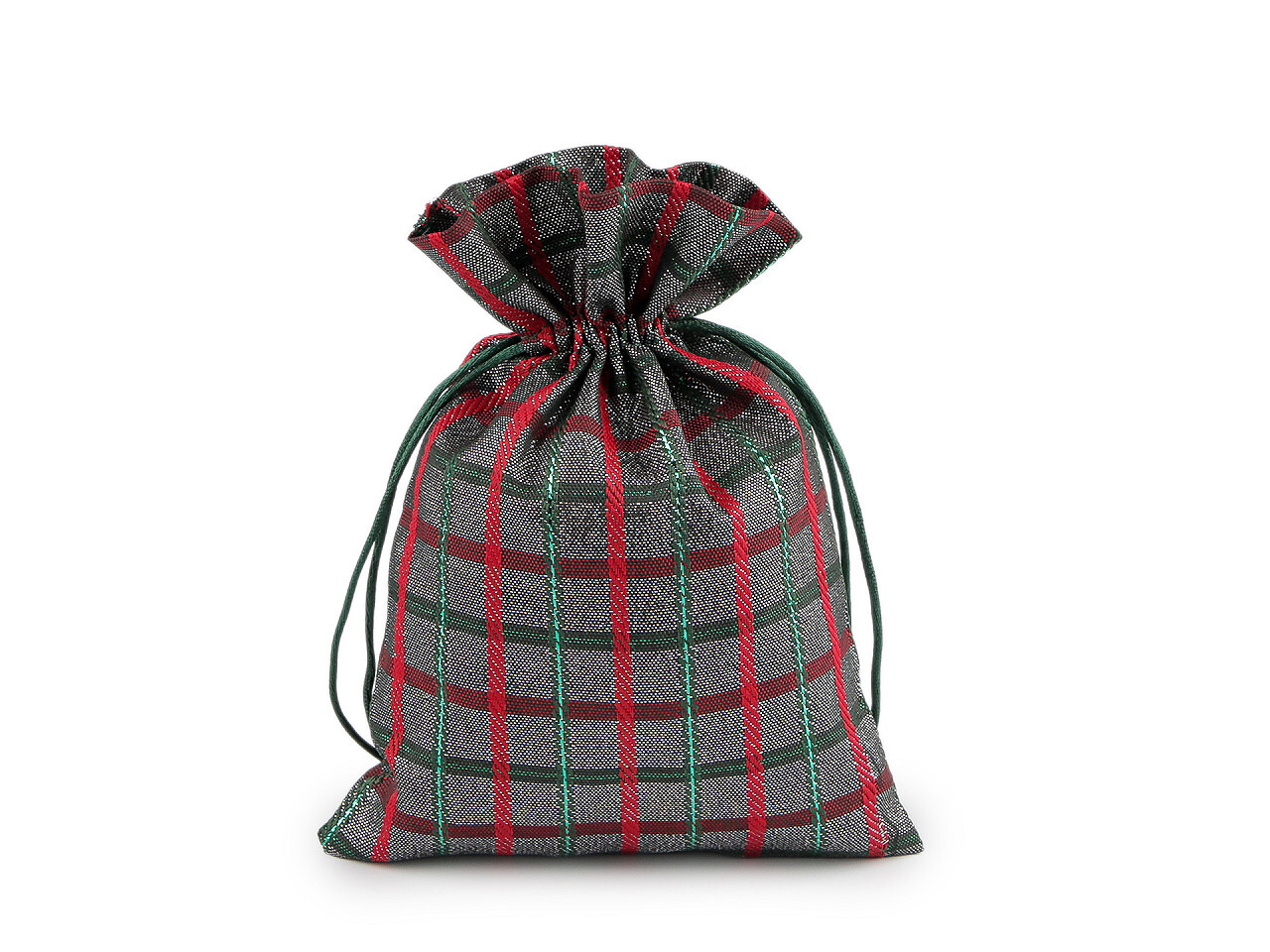 Vánoční dárkový pytlík káro s lurexem 13x18 cm - 10 ks - 1 stříbrná