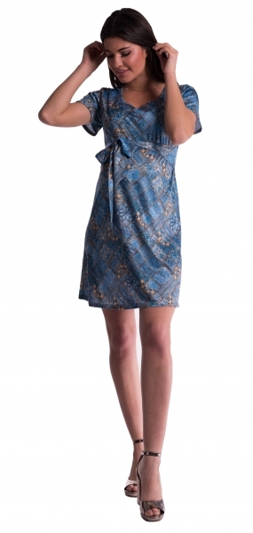 Be MaaMaa Těhotenské šaty s květinovým potiskem s mašlí - tm. modré, rozm. M