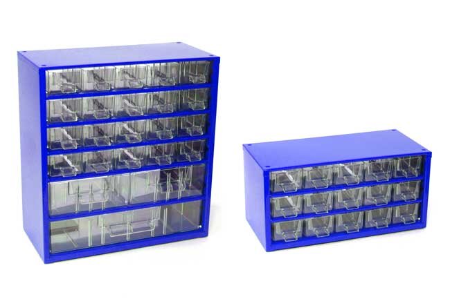 MARS - set skříněk 6731M + 6740M - modrášuplíky - 20M 2S 1V + 15MKvalitní a odolné skříňky Mars, které nesmí chybět ani ve Vaší dílně, jsou vyrobeny z ocelového plechu a opatřeny odolným práškovým lakem. Čiré zásuvky a přepážky jsou vyrobené z trvanlivého materiálu PS(polystyrol).Závěsné skříňky...