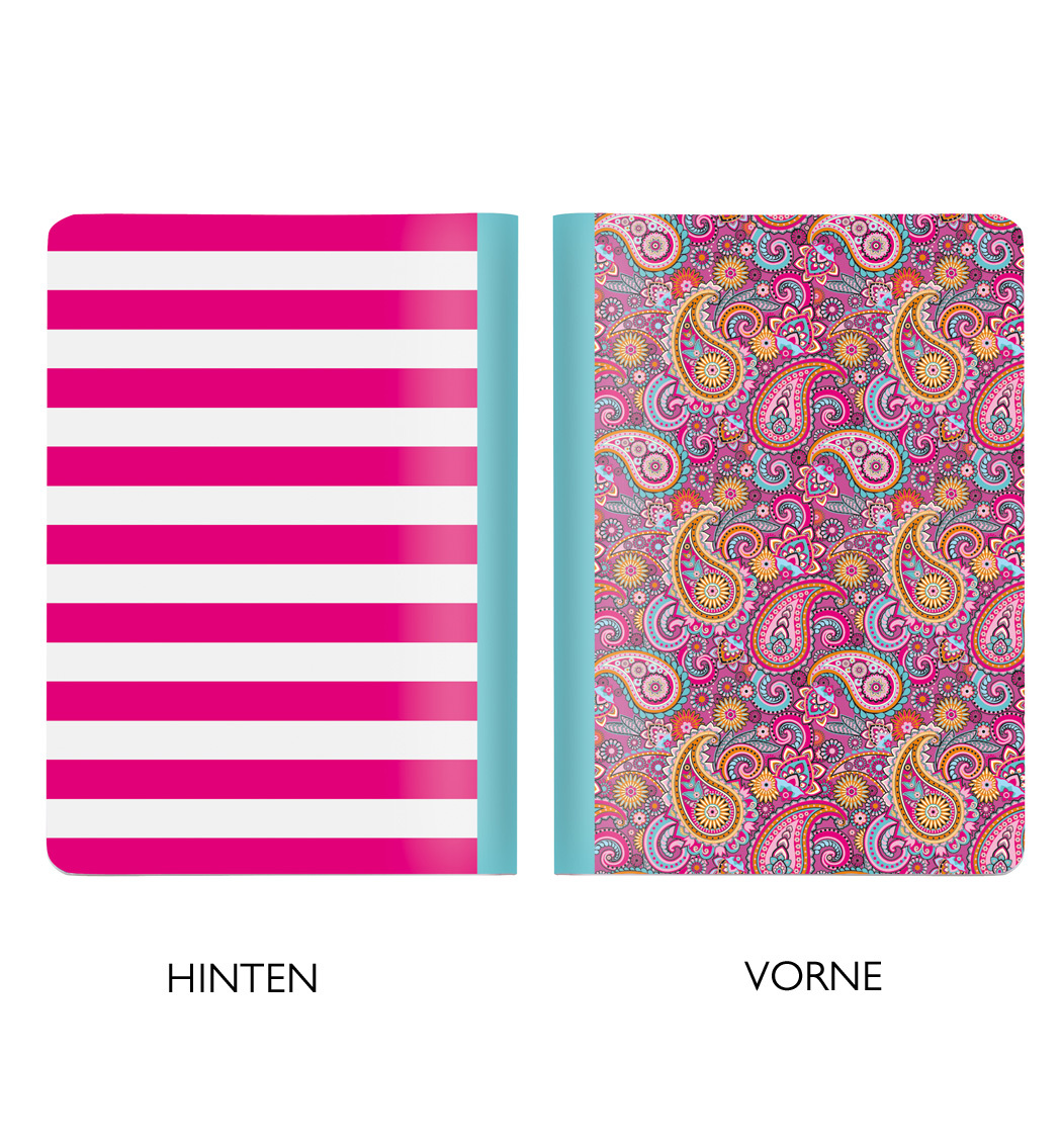 Notýsek/Zápisník A6 ,,TWO IN ONE"zepředu růžové Paisley, zezadu pruhy CEDON
