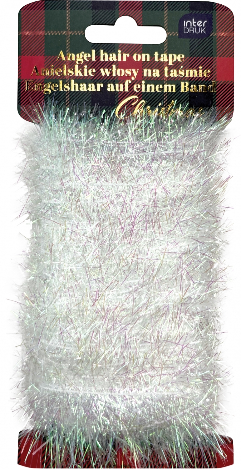 Dekoracyjna taśma z anielskimi włosami w białym kolorze. Idealna do pakowania prezentów, ozdób świątecznych i innych kreatywnych projektów. Długość taśmy: 20 metrów. číst celé