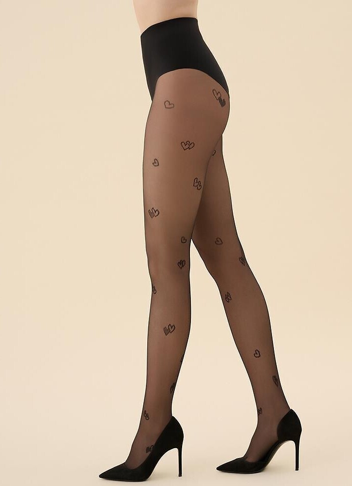 Rajstopy damskie- elastyczne włókno podwójnie oplecione jedwabiem poliamidowym- grubość 20 den- print w serduszka- niewidoczne wzmocnienie na palcach- bez wydzielonej części majteczkowej- płaskie szwy, duży klin číst celé