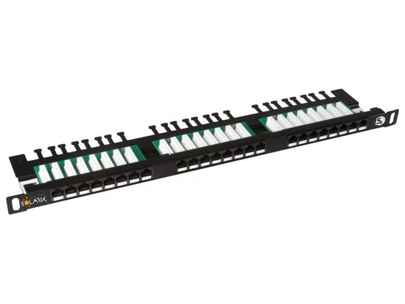 Solarix Patch panel 24xRJ45 CAT5E UTP s vyvazovací lištou černý 0,5U SX24HD-5E-UTP-BK