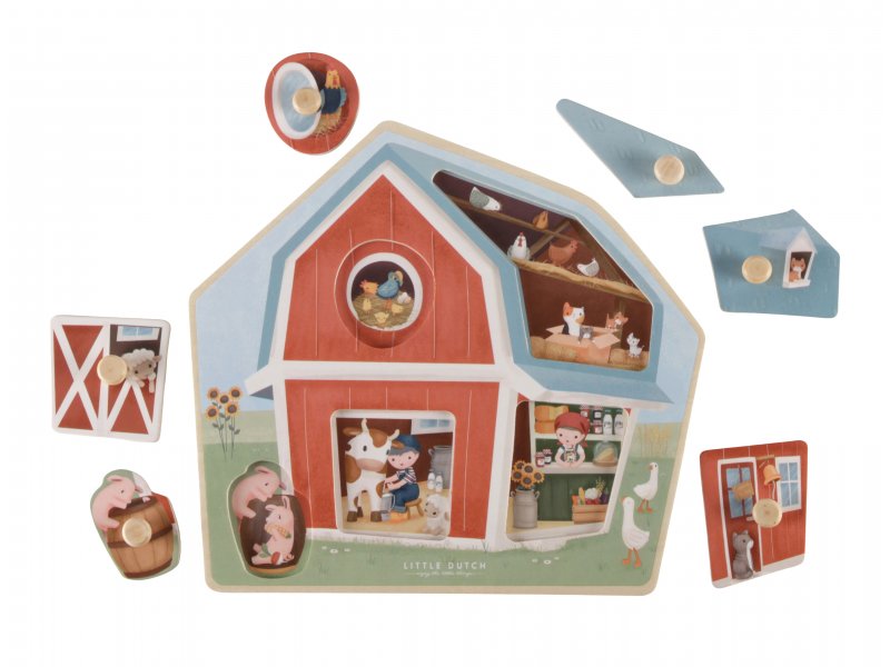 Vkládací puzzle v dřevěném provedení obsahuje 6 pečlivě navržených dílků s motivy života na farmě, které jsou ideální pro malé dětské ruce. Díky kvalitnímu zpracování a bezpečným materiálům je hračka skvělým doplňkem do každé dětské herny. Puzzle je součástí designové kolekce Little Dutch Farma, která klade důraz nejen na estetiku, ale i na udržitelnost a kvalitu.