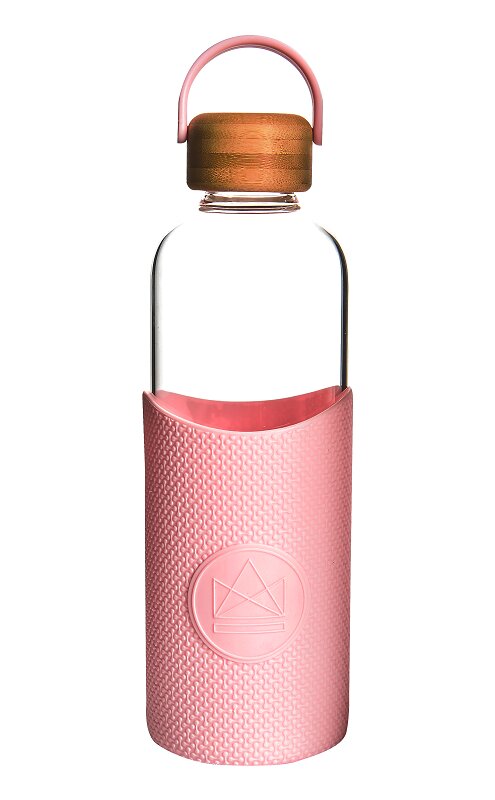 Skleněná lahev na vodu 1l, Neon Kactus, růžová