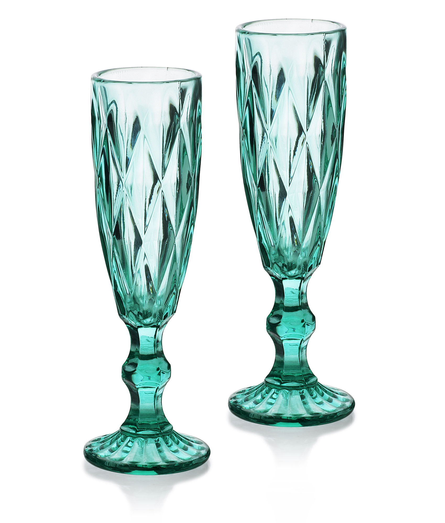 Skleničky jsou vyrobené z vysoce kvalitního skla, které zajišťuje jejich dlouhou životnost a odolnost vůči poškození. Klasičnost tvaru skleničky umožňuje vychutnat si každý doušek a zároveň obdivovat jemné bublinky, které šampaňské ozvláštní. Jemné tyrkysové zbarvení dodává skleničkám šmrnc a eleganci, přitahuje pozornost a podtrhuje slavnostní atmosféru.