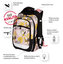 Batoh má prostorné uspořádání se třemi velkými přihrádkami a praktickou přední kapsou na drobné věci, včetně pevných zipů pro bezpečné uzavření. Voděodolné dno s plastovými nožičkami zvýší odolnost proti vlhku a špíně. Díky pevnému a ergonomickému provedení je batoh lehký (pouze 0,9 kg) a přesto nosný až do 7 kg, což většině školních potřeb plně vyhovuje.