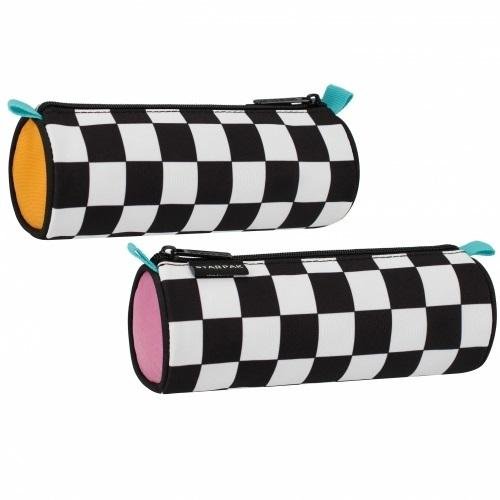 Odporny materiał, podszewka, która chroni przed zabrudzeniem i jest łatwa w czyszczeniu, mocny zamek błyskawiczny, bardzo pojemny. Piórnik w kształcie tuby z zamkiem błyskawicznym. Pomieści niezbędne artykuły piśmiennicze i nie zajmie dużo miejsca w plecaku. Produkt z grafiką w białą szachownicę....