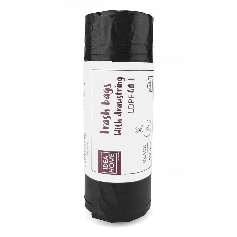 Worki z taśmą ściągającą 60l czarne 40szt