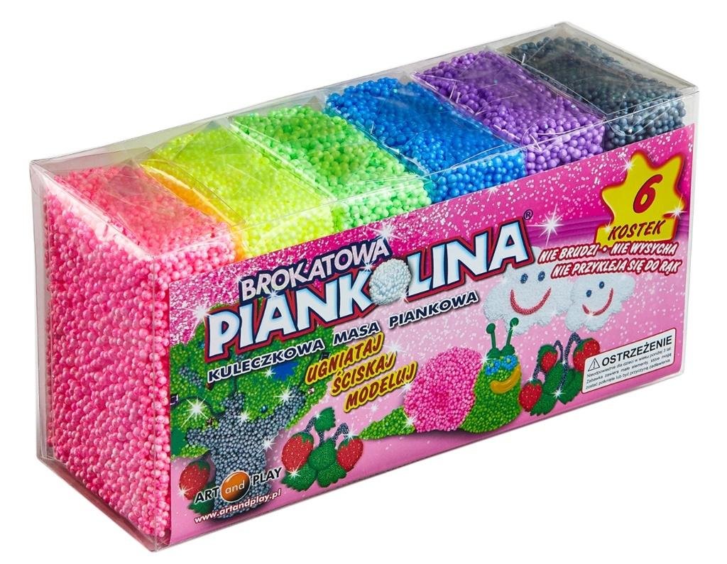Piankolina je jemná a zároveň pevná hmota, která se snadno modeluje do různých plochých i prostorových forem. Díky své lehké struktuře a lesklým brokatovým kostkám zabaví každé dítě. Nelepí se na ruce ani oblečení, nikdy nevysychá a nezanechává nepořádek, což usnadňuje hraní i úklid. Tato kreativní hračka podporuje rozvoj koordinace oko-ruka, jemné motoriky a podněcuje představivost při tvoření nejrůznějších barevných motivů.