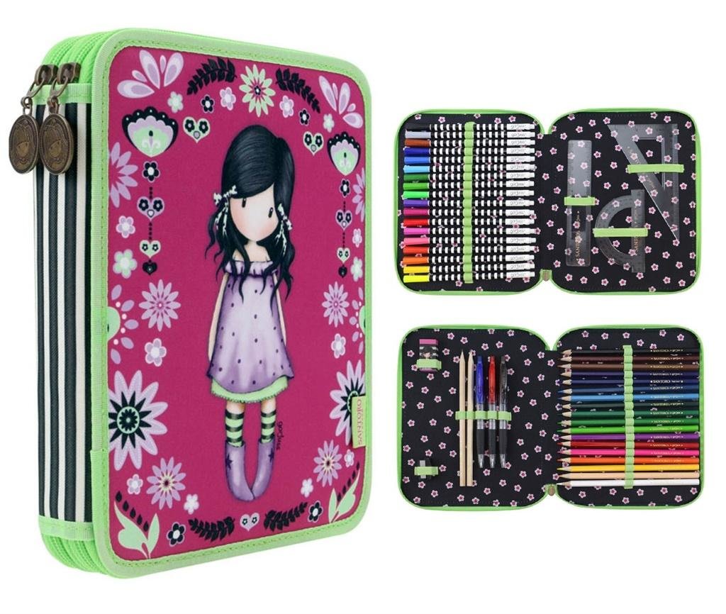Podwójny Piórnik z Wyposażeniem - Gorjuss - You Brought Me Love. Podwójny piórnik z wizerunkiem dziewczynki Gorjuss, w odcieniach magenty, bzu i limonki. Pierwsza komora zawiera 2 ołówki, komplet 3 długopisów i 18 kredek, gumkę, oraz temperówkę. Druga komora wyposażona została w komplet18...