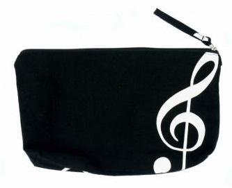 Piórnik, który również może służyć za kosmetyczkę o wymiarach 24 x 14 x 3.5 cm, elegancki z nadrukiem klucza wiolinowego po obu stronach. číst celé
