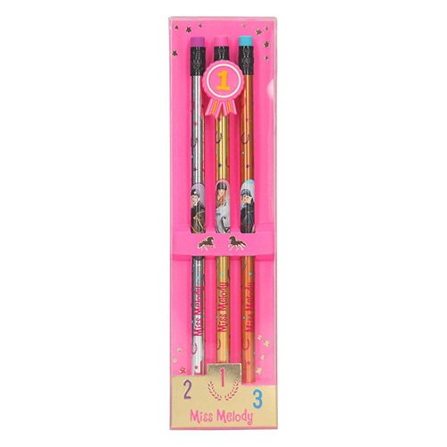 Sada tužek s gumou Miss Melody 3 ks - zlatá, stříbrná, bronzová