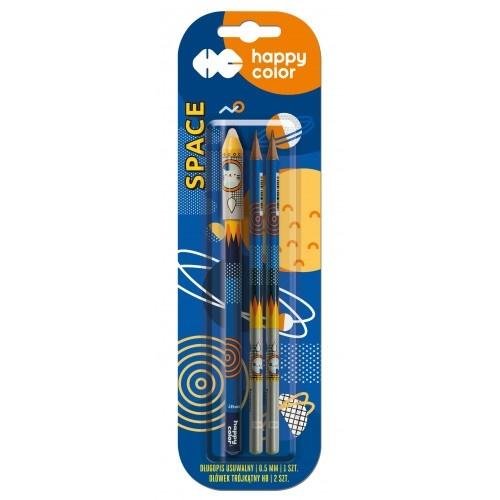 Długopis usuwalny + 2 ołówki Space bls HAPPY COLOR