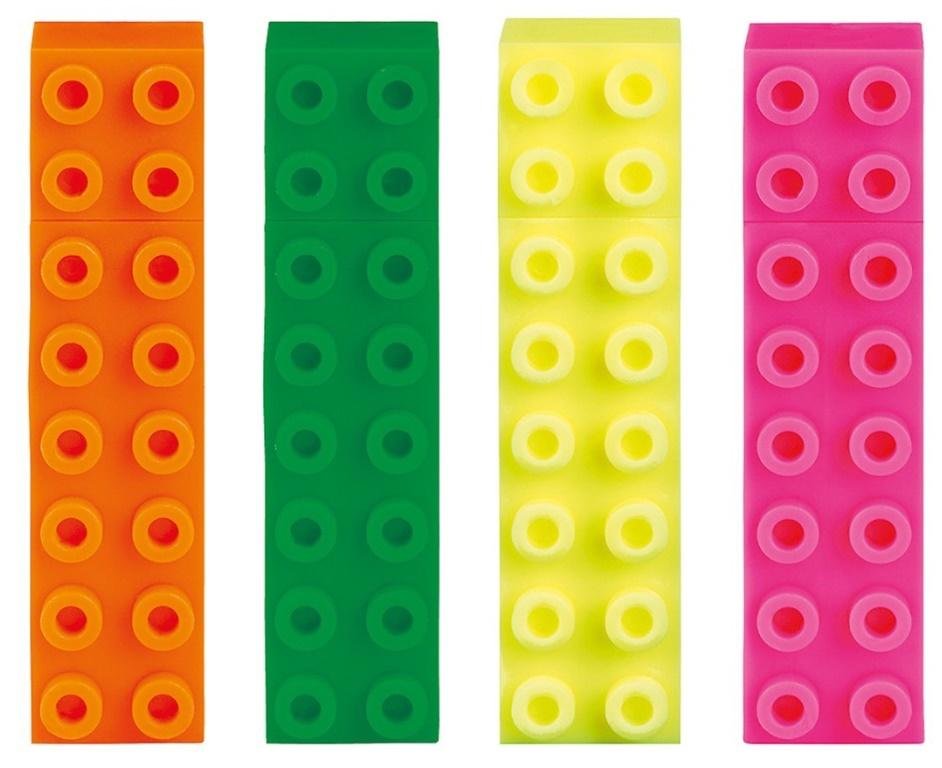 Markery, Zakreślacze - Klocki. Zestaw czterech zakreślaczy w neonowych kolorach: pomarańczowym, zielonym, żółtym i różowym. Są nie tylko praktyczne, ale również zabawne. Dzięki ich kształtom można je łączyć i budować z nich małe konstrukcje. Opakowane w przeźroczyste pudełko doskonale nadają się... číst celé