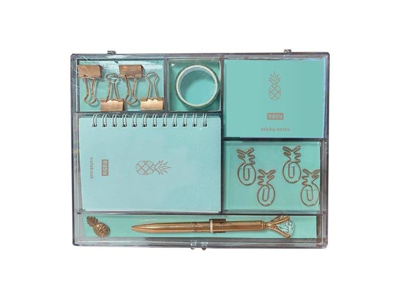 Zútulněte a zorganizujte své pracovní místo s naší dárkovou sadou kancelářských potřeb EASY PINAPPLE SET! Tato sada promění váš stůl na inspirativní a praktické místo, kde se bude pracovat i tvořit s radostí.