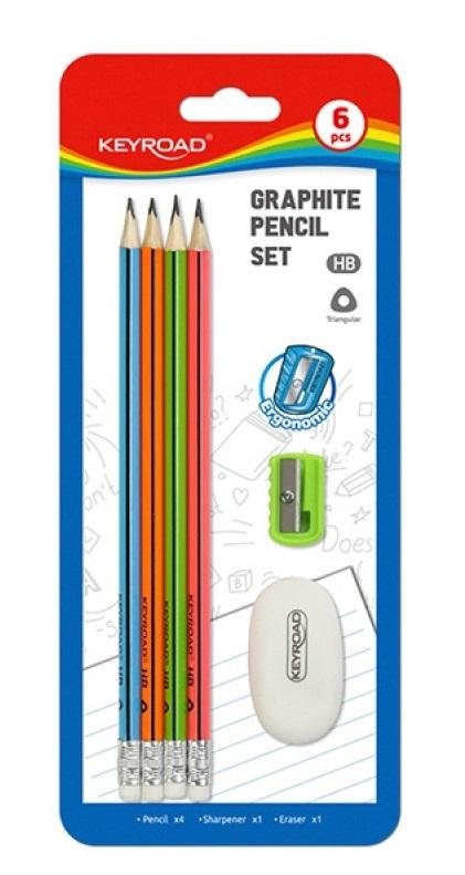 Ołówki HB z gumką i temperówką 6el