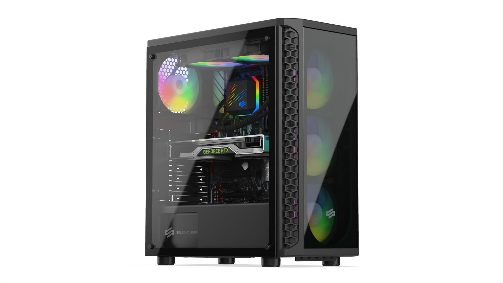 SilentiumPC skříň MidT Signum SG1X EVO TG ARGB / 2xUSB 3.0/ 4x120mm fan/ čelo a bok z tvrzeného skla/ ARGB/ černá