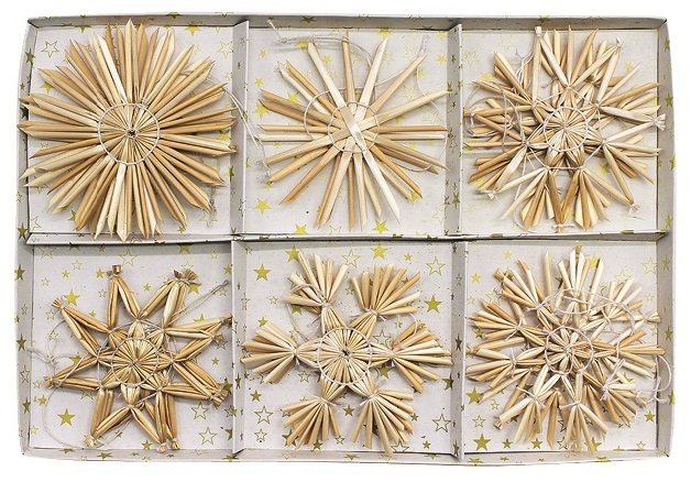 Slaměné ozdoby v krabičce cca 7,5 cm, 12 ks
