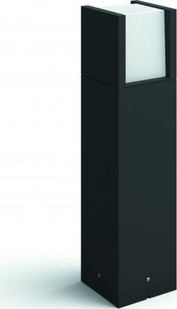 Malý venkovní sloupek Philips Hue Fuzo s výškou 40 cm pro chytré rozsvícení přístupových cest k domu. Pro jeho výrobu byl použit kvalitní tlakově litý hliník s černou matnou vnější úpravou v kombinaci s bílým odolným plastem. Svit vychází z integrovaného úsporného vysoce výkonného LED zdroje Hue...