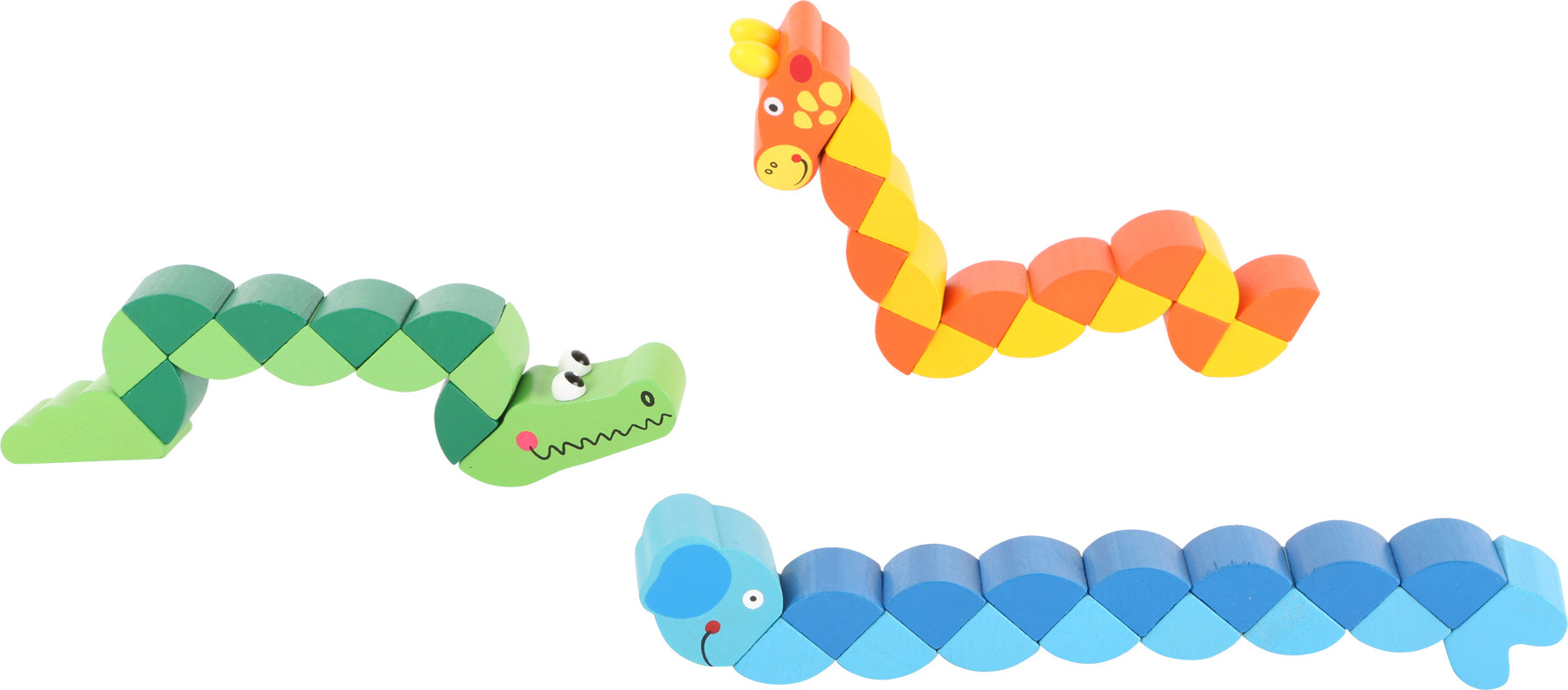 Dřevěné barevné skládací zvířátka 1 ksDivoká a šílená zábava garantována. Ohebná zvířátka mají části spojeny gumičkou, díky tomu je děti mohou ohýbat do všech směrů. Jsou skvělá k procvičování motoriky, vejdou se do dětských batůžků – děti si tak mohou hrát i na cestách. Německá firma Legler...