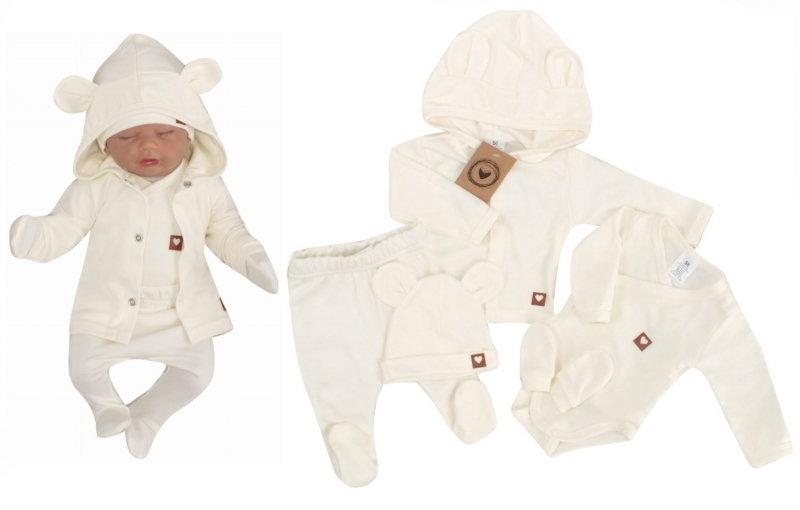 Sada do porodnice 5D, body, polodupačky, kabátek, čepička, rukavičky - ecru, vel. 56; 56 (1-2m)