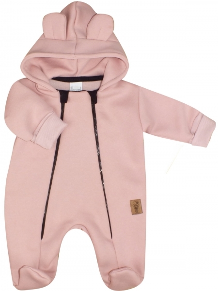 Oteplený dětský overálek se šlapkama a kapucí, Kazum, pudrový, vel. 86; 86 (12-18m)