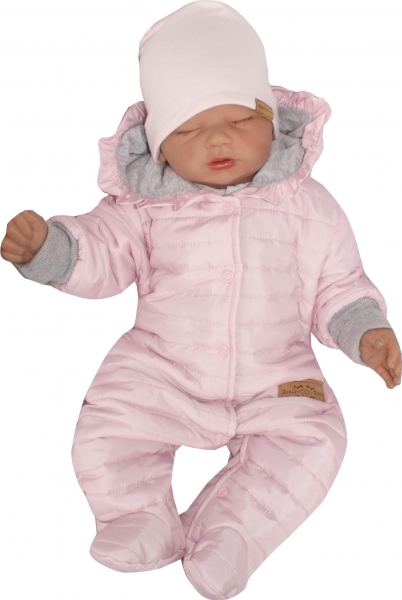 Z&Z Prošívaný dvouvrstvý overálek s kapucí a volánkem, sv. růžový, vel. 62; 62 (2-3m)
