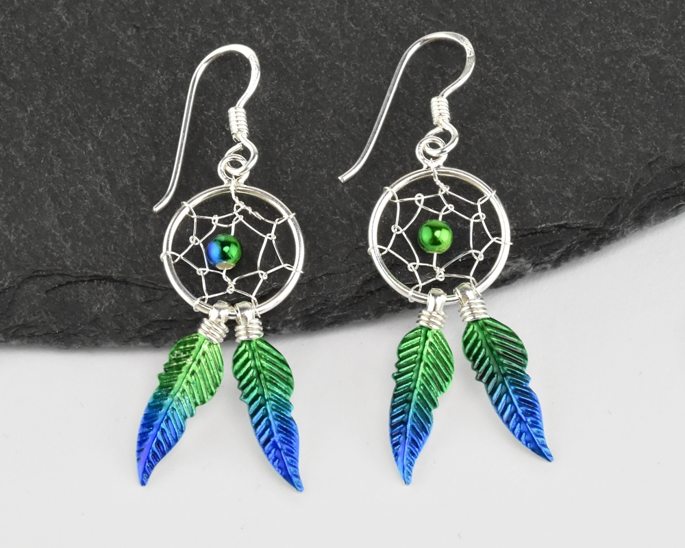 Stříbrné visací náušnice, Lapač snů zeleno-modré