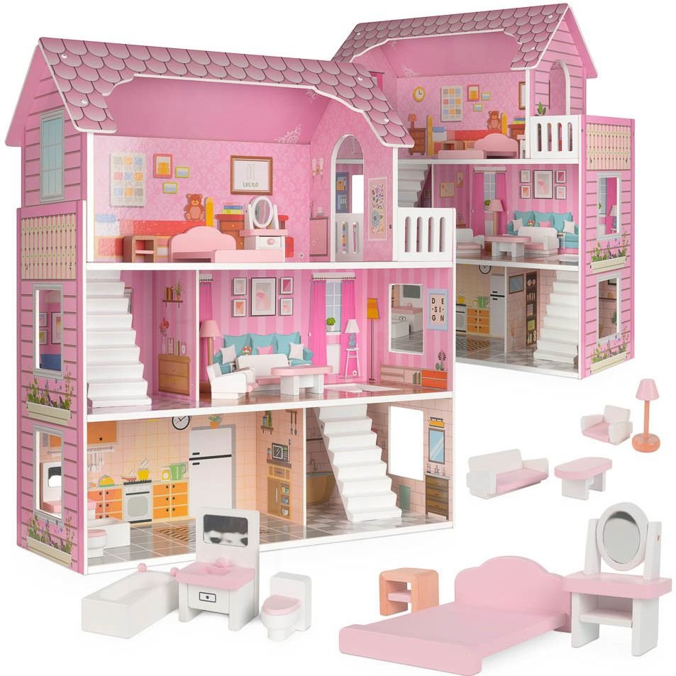 Domeček pro panenky dřevěný LULILO Trikito 70 cmO čem sní každý majitel panenky? Dům, kde by mohly žít všechny panenky, samozřejmě! Tři patra, pět samostatných pokojů a další terasa? To zní skvěle. Fantastický dřevěný domeček pro panenky, který zaručí skvělou zábavu pro každé dítě a jeho...