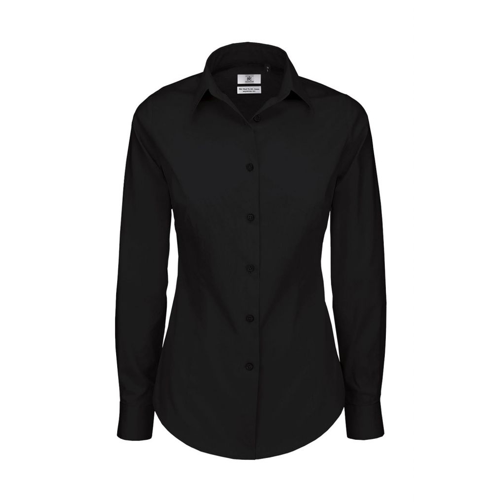 Košile dámská B&C Elastane s dlouhým rukávem - černá, 4XL
