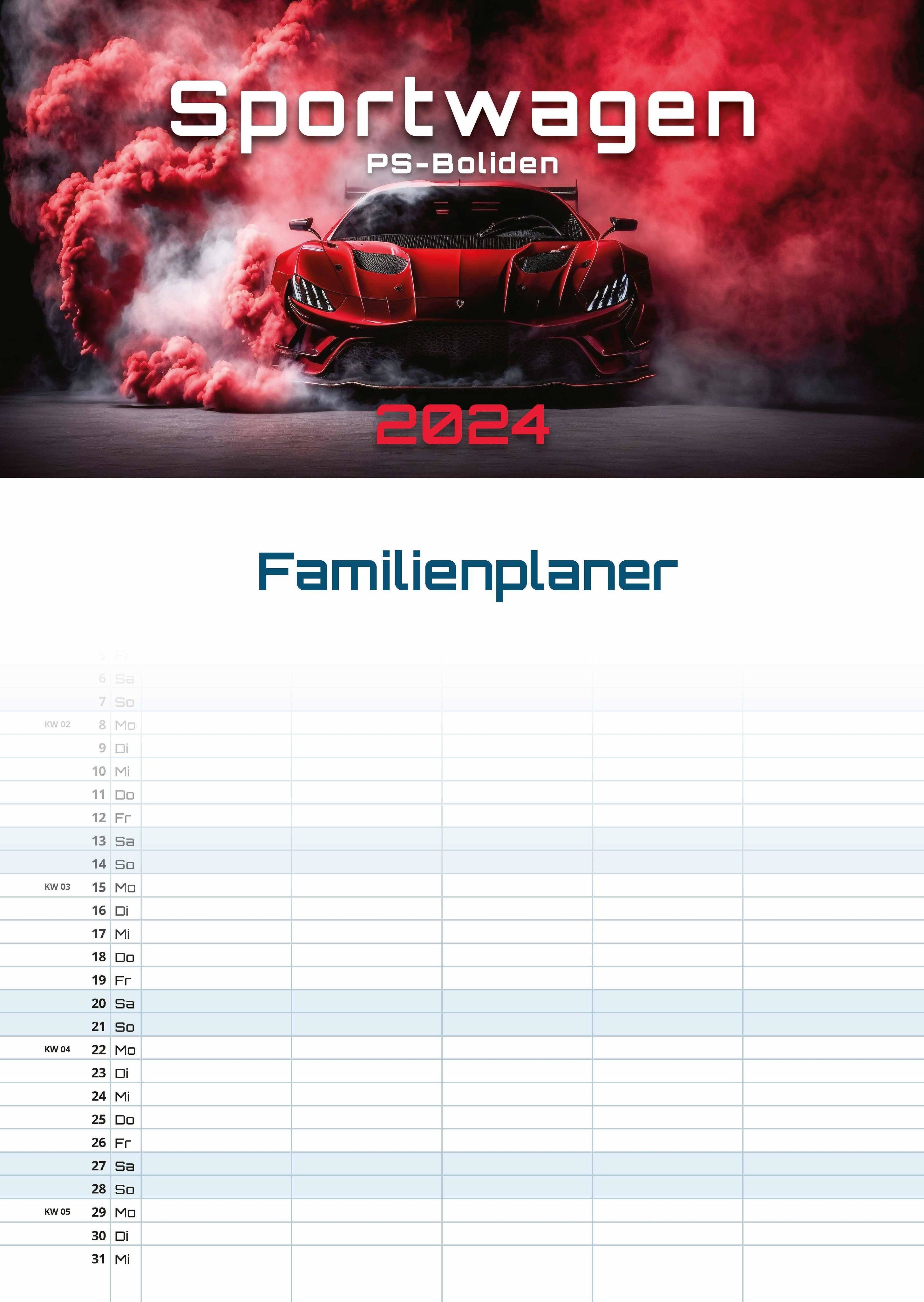 Sportwagen - PS-Boliden - 2024 - Kalender DIN A3 (Familien-/Terminplaner) (německy)