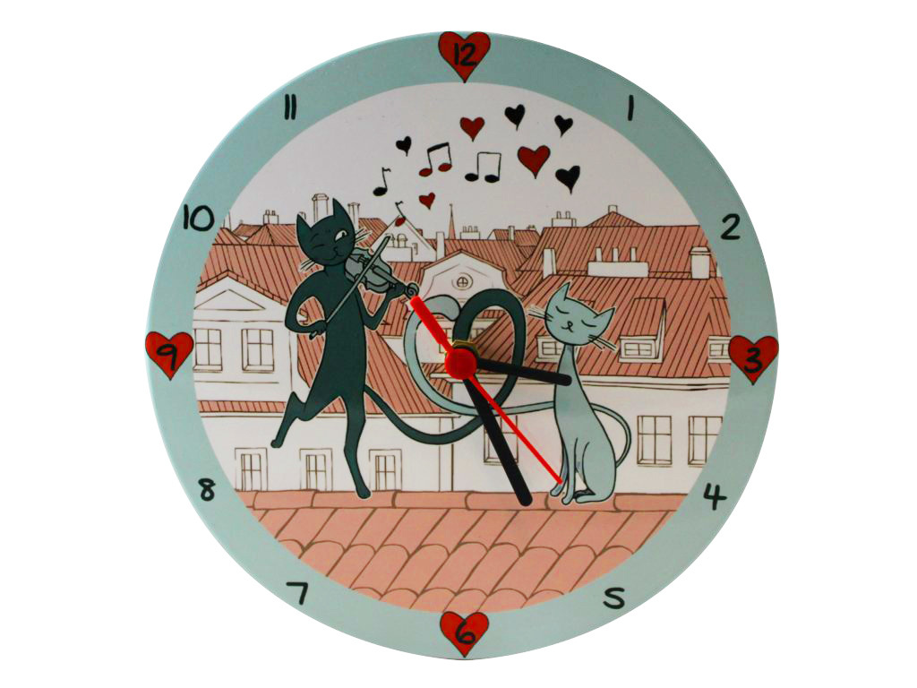 Hodiny ker. 20 cm, kočky ve městě
