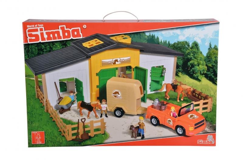 Stáj s koňmi a džípem z řady Superplay. Obsahuje stáj, dva koně, auto s přívěsem pro koně, 4 figurky a další příslušenství. Rozměry stáje: 52 x 18 x 21 cm (šířka x hloubka x výška) a rozměry figurky jsou 6 cm (výška) x 3 cm (šířka). číst celé