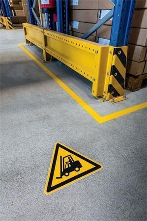 Podlahová výstražná nálepka "Pozor vysokozdvižný vozík”.Použití: k označení vnitřních podlahových povrchů, nebezpečných oblastí, skladovacích prostor, komunikačních cest atp.Tvar: trojúhelníkMateriál: plastProtiskluznost podle ASR A1.5/1.2 „Podlaha” DIN 51130 (skupina R) R9Odpovídá normě ISO 7010... číst celé