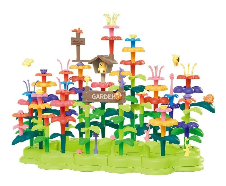 Stavebnice VESELÁ ZAHRADA Se zvířátky 184 dílů představuje zábavný a kreativní způsob, jak děti mohou poznávat svět rostlin a zvířat. Díky jednoduchému zasouvání jednotlivých dílů si malí stavitelé sestaví vlastní květinovou zahrádku plnou rozmanitých rostlin a zvířátek.
