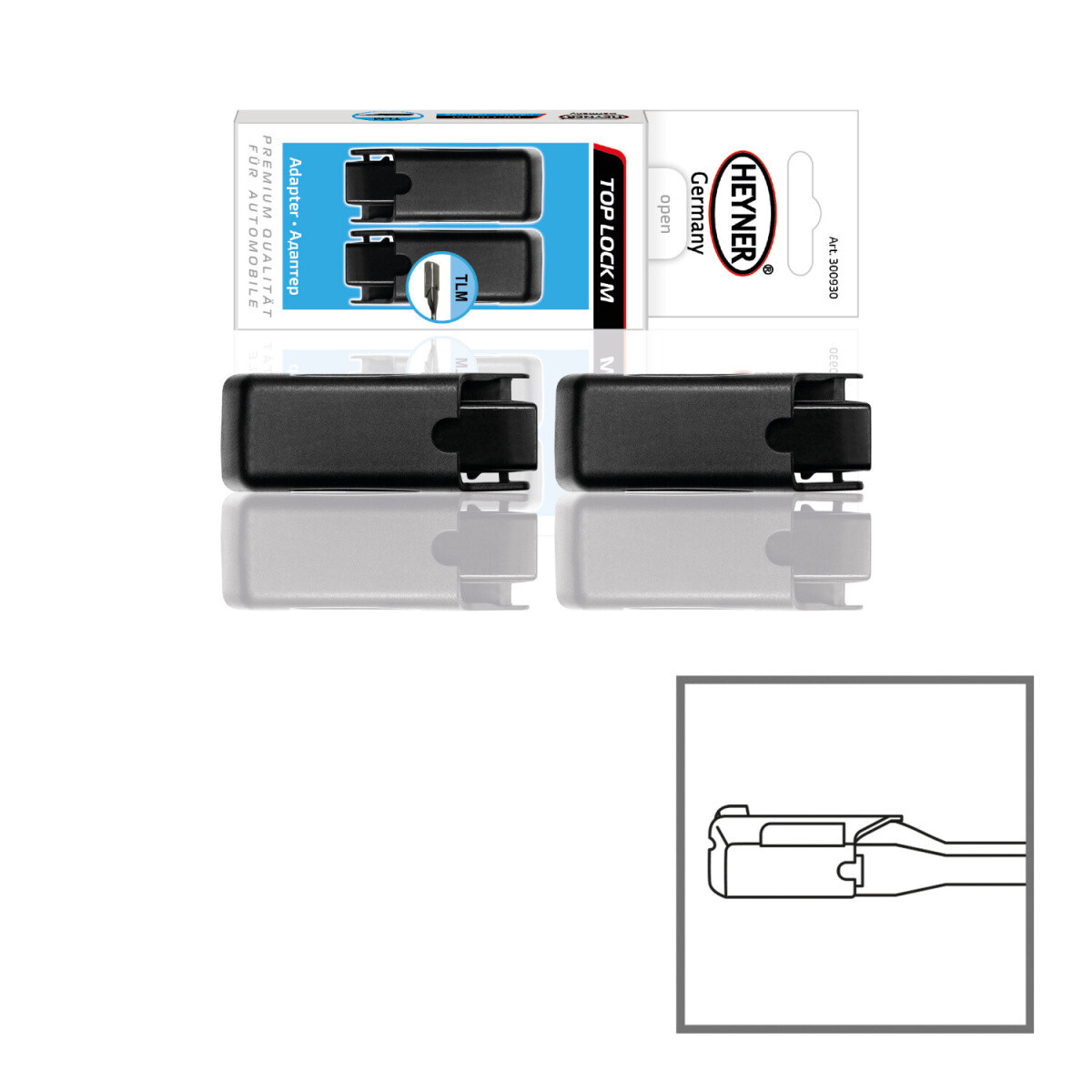 Adaptéry TL M(Top Lock M) pro stěrače Heyner All Seasons, Heyner Exclusive a Heyner Hybrid.Určeno pro nové modely Mercedes BenzSada obsahuje 2 ks adaptéru TL M. číst celé