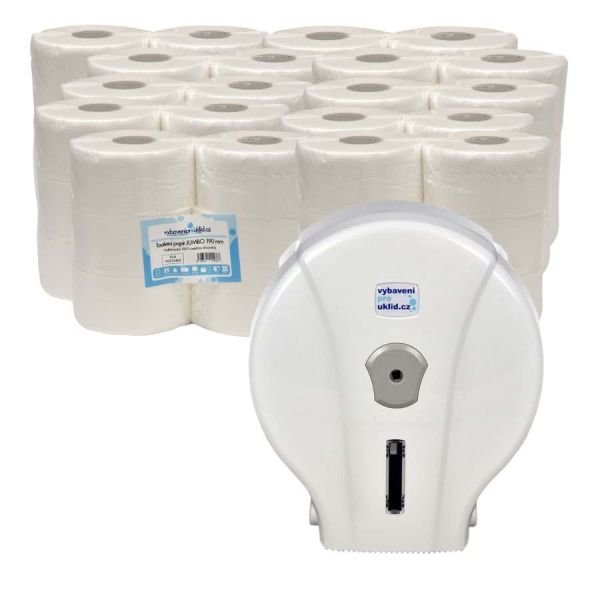 10 x Jumbo toaletní papír 230 mm, 2V, 75% recykl + zásobník zdarma