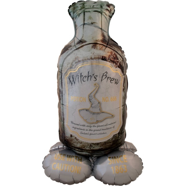 Stojící balonek Creepy Halloween - láhev Witch's Brew - 95 x 85 cm. Skvělá dekorace na halloween, díky své velikosti upoutá pozornost na každé Halloweenské party nebo při oslavě noci čarodějnic. Balonek se plní vzduchem a je opakovaně použitelné. Balonek je určen k nafukování pumpičkou.  Rozměr:... číst celé
