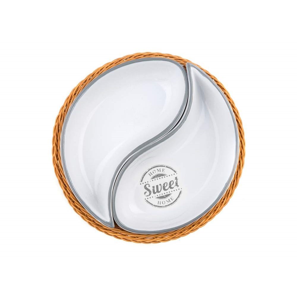 Mísa v košíku SWEET HOME o průměru 20,5 cm v proutěném PVC košíku 20,5 cm, je vhodná na podávání slaných i sladkých pochutin. Sada obsahuje: 2 x misku a 1 x proutěný PVC košík. Jedná se o oblíbenou kolekci keramiky s dekorem SWEET HOME, kterou můžete doplnit o další položky z této dekorované řady. číst celé