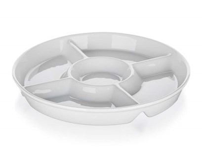 Servírovací miska BIANCA v bílém porcelánu je skvělým doplňkem vašeho stolování. Díky praktickému dělení si snadno uspořádáte různé pochoutky na jednom místě, ať už jde o dipy, oříšky, chipsy nebo kousky čerstvého ovoce a zeleniny.