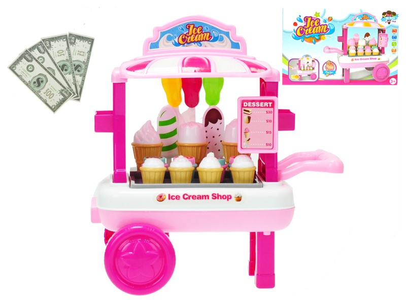 Vozík zmrzlinový pojízdný 23x33x20cm s doplňky v krabičce