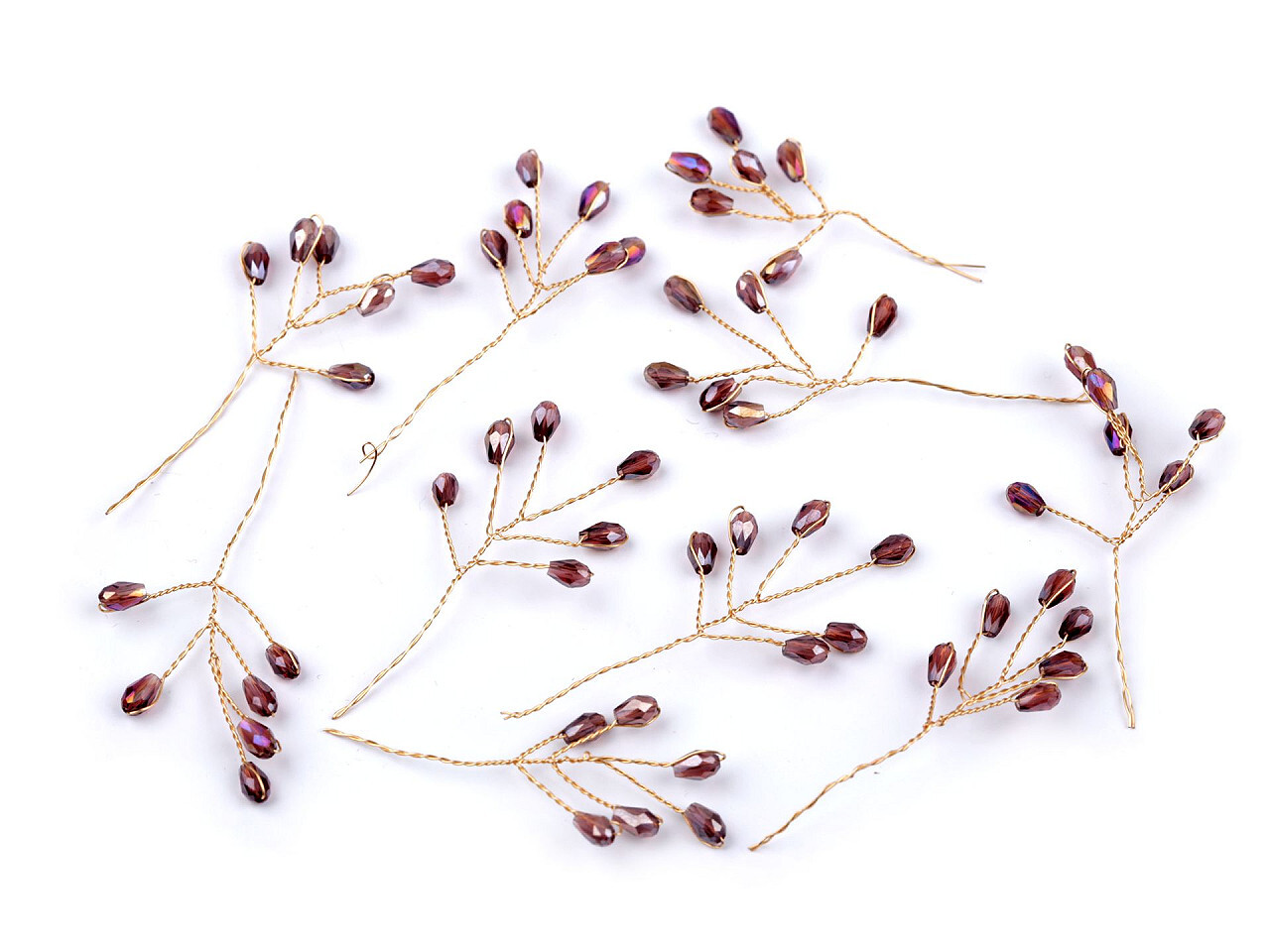 Větvička drátěná s broušenými korálky hand made - 10 ks - 4 ametyst zlatá
