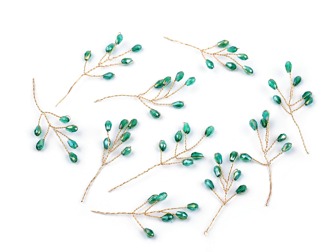 Větvička drátěná s broušenými korálky hand made - 10 ks - 6 green turmaline zlatá
