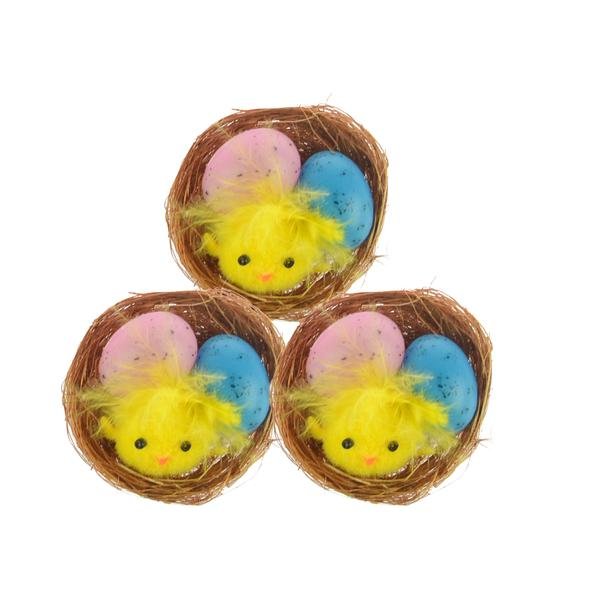 KUŘE V HNÍZDĚ S BAREVNÝMI VEJCI 3 KS, 5 CM