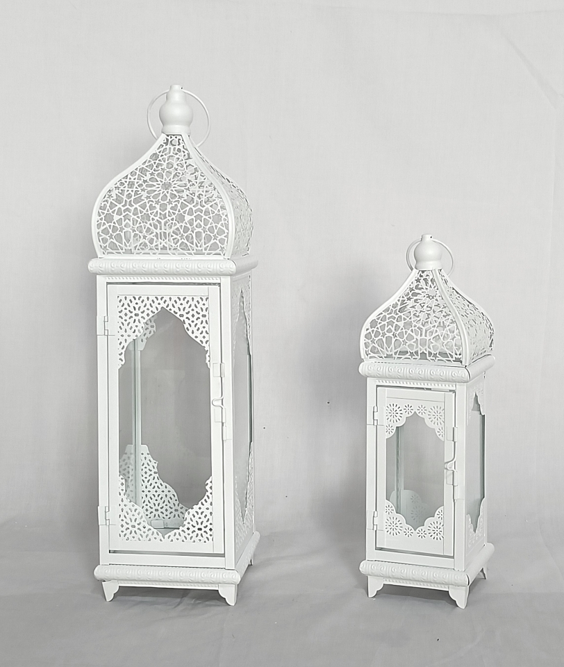 Kovová lucerna bílá, sada 2 ks